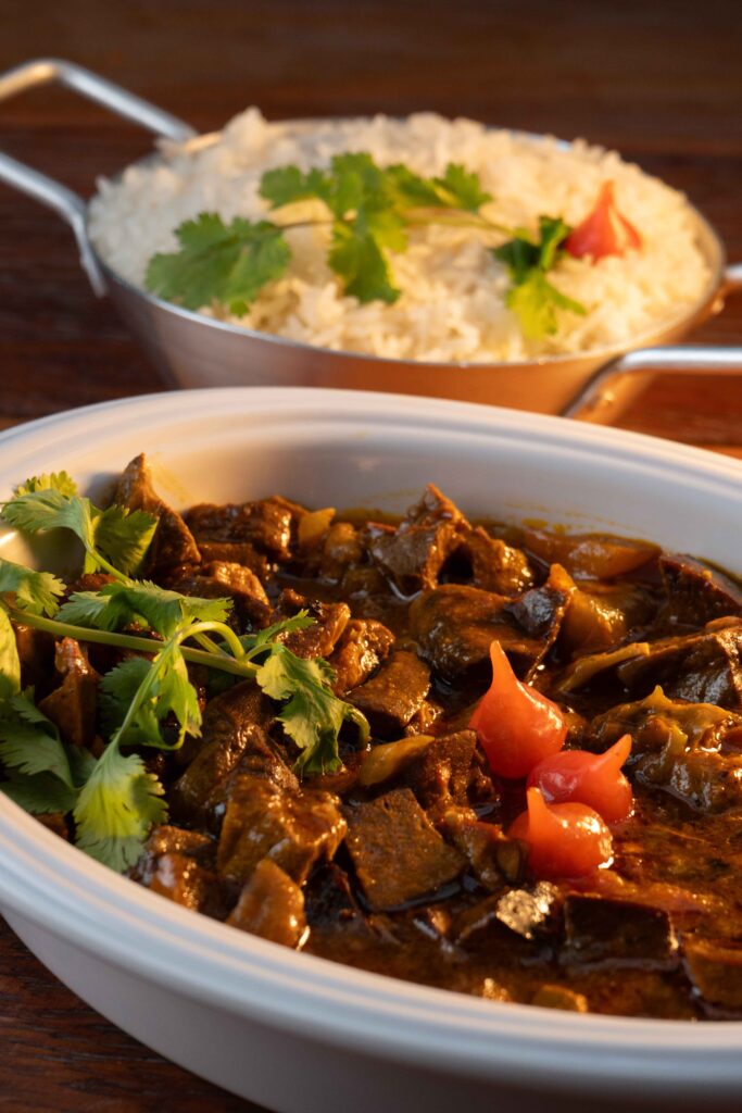 Informações: Carne de Cabrito ao molho servida com arroz branco